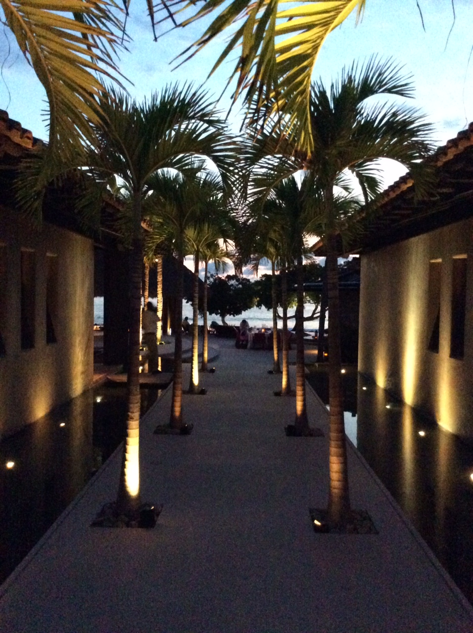 The terrain is hilly and thick with palms and bougainvillea, punctuated here and there by a fairway or green of one of the two 18-hole Jack Nicklaus golf courses within the property. Every structure is hidden behind walls, vegetation, or both, giving the place the feel of an endless parkland. We never laid eyes on the St. Regis or the Four Seasons, though I suppose with some modicum of effort we could have. But effort was soon to seem a ridiculous notion.