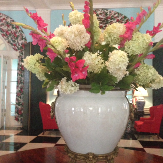 But the next infusion of life into the storied property was perhaps the most defining for the modern visitor. After World War II, a young New York interior designer named Dorothy Draper, who had recently refurbished the Carlyle Hotel in Manhattan, was hired to restore the hotel to its former elegance. What she did was turn a drab, dated mausoleum, most recently a hospital and jail, into a giant canvas of color and panache, full of bold floral motifs and stark geometrics, whose signature style has lasted to this day. The place is a living museum of a certain brand of indulgent, vibrant, feminine visual sensibility that could only have found acceptance after years of drab wartime deprivation. It still works; you smile when you enter the place to see the fun that was being had, and still is.